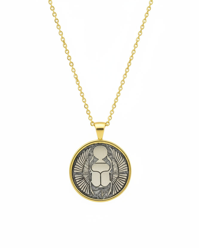 Antik Mısır inançlarından esinlenen böcek tasarımı, dönüşümü, korumayı ve yenilenmeyi sembolize eder. Böcekler, özellikle de scarab gibi böcekler, pozitif enerji ve ruhsal büyümenin getiricileri olarak görülürdü. Bu kolye, modern bir dokunuşu zengin tarihi önemle birleştirerek hem şık hem de anlamlı bir aksesuar haline getirir.